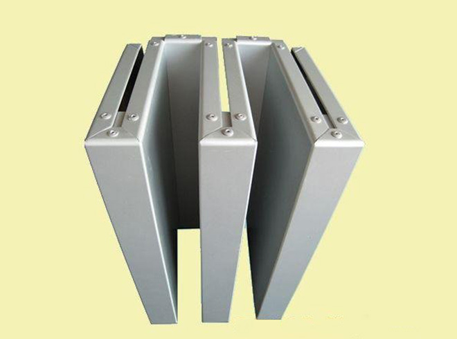 鋁單板采用優(yōu)質(zhì)高強度鋁合金板材,主要由面板、加強筋和角碼組成。加強筋與面板后的電焊螺絲釘連接,使之成為一個牢固的整體,極大增強鋁單板幕墻的強度和剛性,